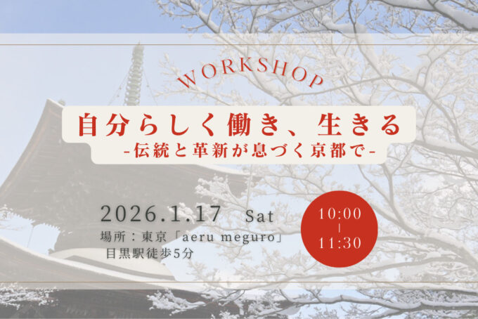 各種研修・ワークショップ・イベント等は、東京「aeru meguro」、京都「aeru gojo」での実施が可能です(オンライン、日本各地への出張も承っています)