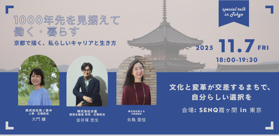 【スペシャルトーク in 東京】「1000年先を見据えて働く・暮らす」京都で描く、私らしいキャリアと生き方 ― 文化と変革が交差するまちで、自分らしい選択を ―